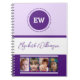 Carnet en spirale violette, lilas et blanche. Ajoutez les initiales, le nom et 4 photos.