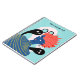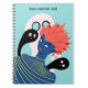 Personalised psychedelic notebook with a vector illustration of a weird girl with blue skin, red hair and glowing eyes, surrounded by her imaginary friends which are cute and spooky black and white ghosts. This strange trippy artwork will appeal to a person who likes dark, freaky art. It's great for Halloween, too.