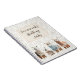Knitting journal to personalize with a title. Four cute, white and brown alpacas, wearing sweaters, make a fun border along the bottom. Garter stitch knitting is the background image.