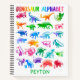 Cahier à Spirale Motif Alphabet Coloré Dinosaure Aquarelle Enfants pour l'École. Un dinosaure pour chaque lettre de l'alphabet dans une silhouette aquarelle colorée. Alphabet dans l'ordre sur la couverture avant, le motif au dos. Personnalisez avec votre nom.