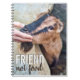 Ce cahier présente une chèvre amicale et amusante qui demande des câlins à un ami humain. Les mots "Ami pas nourriture" sont imprimés ci-dessous en blanc et marron.