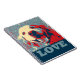 Ce carnet comporte un plan rapproché d'un chien de sourire de golden retriever, fait dans le style de pochoir de "espoir" avec des couleurs rouges, blanches et bleues, avec l'amour de mot.