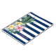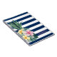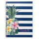Cette image présente l'ananas avec des fleurs tropicales sur des rayures bleu marine. Personnalisez le nom pour vous-même ou comme une idée cadeau mignonne.