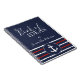 Créez un carnet nautique bleu marine, blanc et rouge personnalisé pour des idées et des plans avec la conception stylisée de la typographie, de l'ancre et des rayures. Tapez votre nom en utilisant le modèle pour créer un cadeau unique pour vos proches. Les rayures blanches et rouges ont un aspect dessiné à la main.