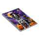 Embrassez l'esprit d'Halloween avec ce design enchanteur avec un chien mignon dans un casquette sorcier entouré de citrouilles sculptés. Parfait pour ajouter une touche de charme éffrayant à vos célébrations festives.