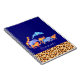 Carnet spiral conçu avec une bordure empreinte de léopard de couleur orange exotique le long du fond. Illustré avec une aquarelle numérique d'un troupeau d'animaux sauvages qui courent ensemble. Les animaux comprennent un dauphin saut, une girafe, un éléphant, un kangourou, un rhinocéros, un lion et un léopard. L'arrière - plan est de couleur violet bleuâtre. Personnalisez avec un nom ou un autre texte tel qu'un titre de sujet.