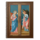 ". L'Ange du Seigneur déclara à Marie, ℟. Et elle conçut l'Esprit Saint." C’est ainsi que commence la prière trois fois par jour de l’Angelus, la Bienheureuse Vierge Marie (BVM), qui commémore l’Incarnation à l’Annonciation. + L'Annonciation était un sujet très populaire dans l'art du Moyen Âge et de la Renaissance. En tant que composition à deux personnes, le sujet se prêtait à l'utilisation sur les feuilles extérieurs des triptyques : l'ange sur une feuille; Marie, sur l'autre. Un triptyque est une oeuvre d'art, le plus souvent une peinture à panneau, qui est composée de trois parties articulées de telle sorte qu'elle puisse être affichée ouverte ou pliée fermée. + Ici, Filippo Lippi (1406-1469) a peint l'Annonciation en tempête sur le bois dans des roses chaudes, saumon et rouges et dans des bleus brillants et foncés. Les deux figures se tiennent dans leurs espaces respectifs étroits, l'Archange Gabriel se inclinant légèrement devant la douce et douce Maiden Mary. + Saints_Aabondance aime un arrière - plan brun foncé pour cette image. Un arrière - plan brun foncé donne l'impression aux spectateurs qu'ils sont spectateurs observant la scène par une fenêtre. Mais, comme d'habitude, nous avons fourni une carte postale Palette de Couleur pour d'autres teintes suggérées. + Fête de l'Annonciation : 25 mars ; Fête de Saint Gabriel l'Archange : 29 septembre + Crédit image (M 038) : Image antique de l'Annonciation de Filippo Lippi (1406-1469) d'une carte postale de fin du 19e siècle publiée à l'origine en chromolithographie, par E. Sborgi, Florence, Italie, de la collection privée de l'architecte d'éphémère religieux. Les panneaux d'origine d'un polyptyque d'origine inconnue se trouvent dans la salle philippine et philippine de la Galerie des Offices à Florence. L'Annonciation forme les moitiés supérieures des deux feuilles tandis que SS. Anthony Abbott et John le Baptiste apparaissent respectivement en bas à gauche et en bas à droite.