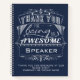 La meilleure façon de montrer votre appréciation à un conférencier d'honneur lors de votre événement ou groupe. Ce carnet élégant montre le message "Merci pour être un orateur génial - ou changer le nom en fonction de votre terminologie. En bleu foncé et blanc, ce design stylisé de typographie fait une façon moderne et attrayante de dire merci.