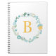 Carnet Aqua et Yellow Monogramme Floral Wreath