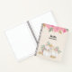 Un carnet en spirale personnalisé avec des citrouilles blancs d'aquarelle fantaisie aux accents de parties scintillant en faux or. Entouré de feuilles verts et de fleurs sauvages roses.