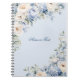 Aquarelle bleu Dusty Fleurs d'ivoire Feuille carnet rustique. Facile à personnaliser. Le style de police, la taille et les couleurs peuvent être modifiés. Éléments correspondants disponibles.