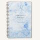 Carnet élégant avec votre nom et description sur un arrière - plan d'aquarelle bleu peint à la main.