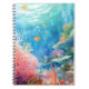 OEuvre d'aquarelle de la Grande Barrière de Corail avec poissons, coraux et algues dans l'eau de l'océan bleu marine.