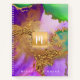 Carnet Aquarelle de marbre or violet aqua vert monogramme