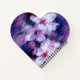 Les fleurs d'amande blanches sont en contraste saisissant avec un arrière - plan violet brumeux.