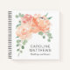 Un carnet carré personnalisé dans de jolies fleurs de pêche et d'aquarelle rose avec la verdure finale et le texte personnalisé que vous pouvez modifier comme vous le souhaitez. Un carte de visite carré assorti est disponible dans ce design féminin.