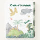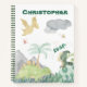 Ce mignon carnet de dinosaure est créé pour le gosse aimant les dinosaures dans votre vie. On y trouve d'adorables dinosaures dans leur habitat naturel. Les tons vert, gris et marron doux et neutre apportent un sourire apaisant à tous ceux qui le voient. Personnalisez facilement ce mignon carnet spiral à thème dinosaure avec le nom de votre enfant passionné de dinosaures dans la police préhistorique pour lui donner une touche spéciale et personnelle.