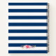 Aquarelle Rose or Floral Navy Blue Stripes Notes personnelles Bloc-notes.