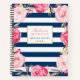Carnet Aquarelle rose or Floral Marine Bleu rayures