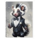 Carnet Aquarelle Skunk Tuxedo Cravate noire Fleur blanche