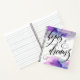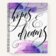 Carnet spiral branché avec des espoirs et des rêves écrits dans un magnifique script de calligraphie tourbillonnant. L'aquarelle se décline en violet, violet et gris.