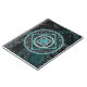 Ce mandala à thème Aquarius est composé d'une pierre turquoise entourée du symbole du signe, de la constellation et du symbole alchimique de l'Air, entre fibres et tissages.