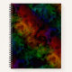 Ce carnet en spirale présente une aquarelle abstraite colorée à arc-en-ciel et une peinture à l'encre sur un arrière - plan noir.