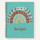 Le design moderne et artistique présente des gribouillis Boho dessinés à la main dans les tons terre sur aqua arrière - plan. Texte "Recettes" personnalisable en police couleur terre cuite moderne