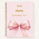 Un arrière - plan rose pâle et doux, décoré d'un grand arc. Personnalisez et ajoutez une année, un nom et un texte.