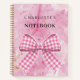 Un carnet féminin pour l'école, la journalisation ou le journal. Fluides roses avec éclaboussures dorées en arrière - plan, décorées d'un grand arc à carreaux. Personnalisez et ajoutez un nom.