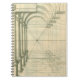 Illustration architecturale vintage d'une esquisse en perspective présentant des rangées de colonnes et d'arches. Dessin antique de l'ère de la Renaissance par Henricus Hondius, tiré du livre Manuel de perspective, 1622.