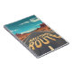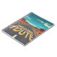 This bold graphic illustration captures the iconic feel of an endless Arizona road cutting through a vast desert landscape. Cracked yellow road lettering, dramatic red rock formations, and a striking turquoise sky create a powerful sense of solitude, freedom, and adventure. The symmetrical composition and stylized details draw the eye forward, evoking classic American road trips, Southwest travel culture, and the spirit of open highways.