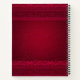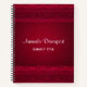Un carnet en spirale personnalisé avec un arrière - plan rouge décoré d'élégants tourbillons et de motifs ornementaux le long des frontières.