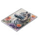 L'aquarelle présente un tigre blanc frappant aux yeux bleus entouré de fleurs de pêche et de violet, une juxtaposition de danger animal sauvage et d'une flore fragile. Image de profil félin féroce avec une esthétique florale féminine.