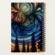 Planificateur personnalisé. Art mystique de l'air avec un ciel tourbillonnant bleu et orange avec des silhouettes de pins.