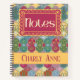Un élément de conception d'art folklorique lumineux présente des billets détaillés de manière complexe et remplis de divers motifs floraux et parsemés de solides et de motifs en quatre feuilles. La déclaration, "Notes", est encadrée de manière ornée avec une bordure en dentelle rose magenta.