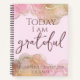 Conception de nom personnalisable pour un cadeau inspirationnel personnalisé avec une citation "Aujourd'hui je suis reconnaissant", dans la typographie moderne lettrée à la main, avec un effet agate abstrait fait avec de l'encre d'alcool dans les couleurs rose, mauve et or.