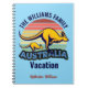 Customisez votre carnet de vacances en Australie en famille avec votre nom ou un autre groupe personnalisé pour votre voyage à l'arrière pour voir les kangourous cool au coucher du soleil. Un magnifique carnet en spirale personnalisé pour détailler vos détails de voyage de votre voyage en dessous.