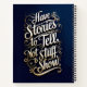 Ce magnifique carnet en spirale présente un design typographique inspirant qui vous encourage à embrasser l'aventure et à vivre pleinement la vie. L'arrière - plan bleu marine fournit une toile riche et élégante pour les lettres chaudes et dorées qui se lisent comme suit : "Ayez des histoires à raconter, pas des choses à montrer." Les fleuris de décoration complexes et les éléments dessinés à la main autour du texte apportent une touche de fantaisie et d'art, faisant de ce carnet une pièce visuellement frappante et motivante. Que vous l'utilisiez comme journal, planificateur ou carnet de croquis, ce carnet servira de rappel permanent pour découvrir de nouvelles expériences, explorer le monde qui vous entoure et créer la vie de vos rêves
