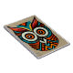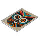 Il s'agit d'une chouette décorative faite à la main et stylisée avec des motifs aztèques aux couleurs noir, rouge, turquoise et orange.