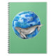 Tableau aquarelle original de Sandra Gale, représentant une baleine à bosse nageant devant un globe aquatique bleu représentant la terre. Un design parfait pour les amateurs de baleines, les plongeurs, les défenseurs de l'environnement et ceux qui aiment les baleines.