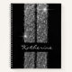 Bande de course en argent et en faux parties scintillant noir foncé sur un carnet personnalisé avec nom, cadeau parfait pour l'amateur de course automobile et automobile, mécanicien, ou nouveau conducteur. Utilisez l'éditeur de modèle pour modifier la couleur de l'arrière - plan. Peut être utilisé comme journal, carnet de rendez-vous, carnet de kilométrage, pour des notes de voiture ou des listes de todo.