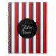 Carnet Bandes rouges, blanches et bleues nom personnalisé