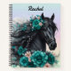 Carnet Beau Cheval Noir avec Fleurs Turquoises