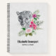 Un carnet en spirale personnalisé avec une belle illustration représentant un portrait léopard gris, noir et blanc. Ce bel animal est entouré d'un bouquet de fleurs tropicales. Élégant, exotique et joli.