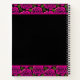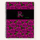 This modern & trendy, beautiful & colorful girly custom Notebook & Journal features hot pink and magenta roses with green leaves seamless pattern on black with personalised stylish typography name monogram & date. Perfect for home business, personal or any occasional: birthday, mothers day, graduation or anniversary & wedding unique & beautiful gift ideas for her who loves pink roses. You can easily change the text and colors or remove by customisation tools.