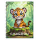 Un cahier personnalisé sur le thème du tigre adorable. Un dessin animé mignon d'un bébé tigre assis dans la forêt ayant l'air adorable.