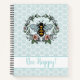 Une abeille moderne dans un design de couronne fleurie avec le dicton "Bee Happy!" Customisez facilement le dicton en quelques clics !
