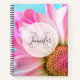 Carnet spiral avec une fleur rose et blanche vibrante. La photo de près de cette fleur enchanteresse attire vraiment votre attention. Un cercle semi-transparent avec votre nom et monogramme initial à l'intérieur.