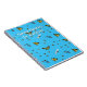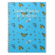 Garden themed, butterflies and bees notebook with custom title. A simple, spiral bound notebook with lined paper that can hold all your notes about garden planning and growing. Use as a journal to record summer days of growing your garden for the beneficial insects. A pattern of blue and yellow butterflies, bees, and dragonflies cover the front over a bright blue background. Text is off-white and is easy to customize for your choice of title.